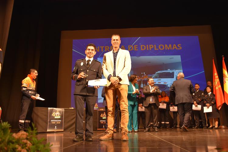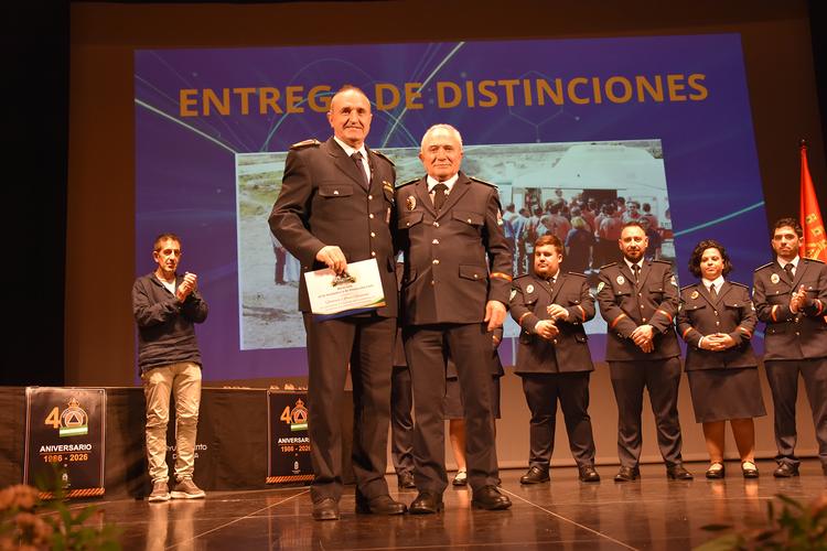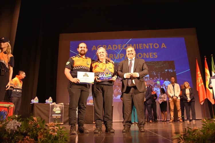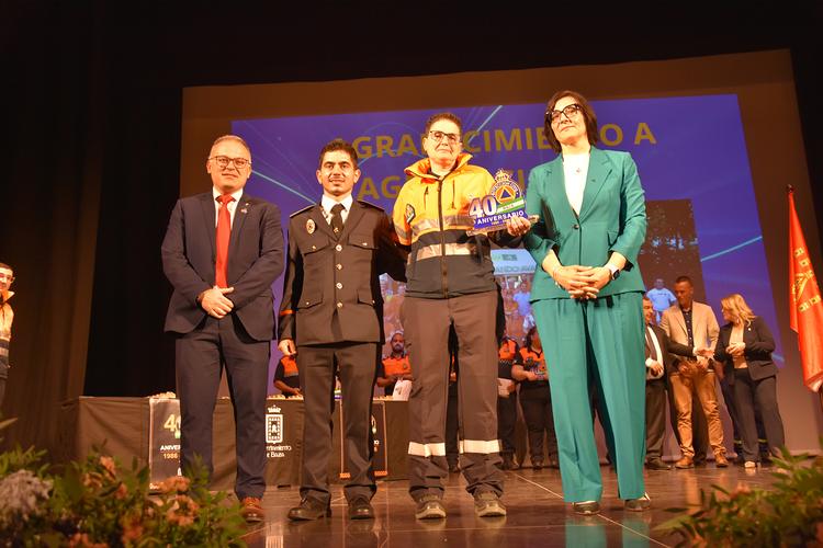 Presentado por Javier Fernández, el acto comenzó con las palabras de Mario Fernández, Subjefe de la Agrupación de Voluntarios de Protección Civil, en nombre de todos sus compañeros. A continuación se proyectó un video resumen con los hitos, el trabajo diario y la entrega de estos voluntarios. Tomó la palabra después el Jefe del Servicio Contra Incendios, Salvamento y Protección Civil, Ramón M. Quirante, quien recordó la historia de la Agrupación y realizó diferentes agradecimientos. Durante su intervención se realizó la primera entrega de galardones, precisamente a los representantes políticos que a lo largo de estos cuarenta años han tenido que ver con la Agrupación.