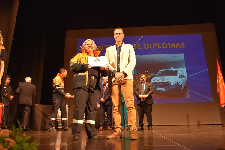 Le sucedió en el atril la concejala de Gobernación, Mª Carmen Sánchez, que tuvo palabras de reconocimiento a los voluntarios por la labor constante que realizan por la ciudad. A continuación se pasó a la entrega de reconocimientos a las distintas agrupaciones de Protección Civil de la comarca con las que siempre hay una estupenda colaboración. Recogieron las distinciones Caniles, Cuevas del Campo, Cortes de Baza, Huéscar, Zújar y Baza.